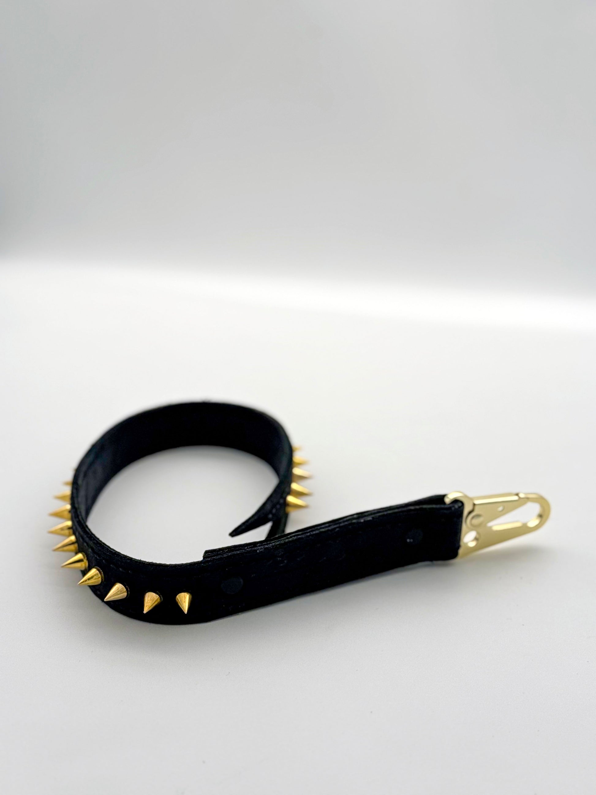 Add edge to your look—and your play—with this handmade spiked leather strap. Whether you're using it for light impact or serious scenes, or simply clipping it to your jeans for a fierce accessory, this strap brings both function and fashion.